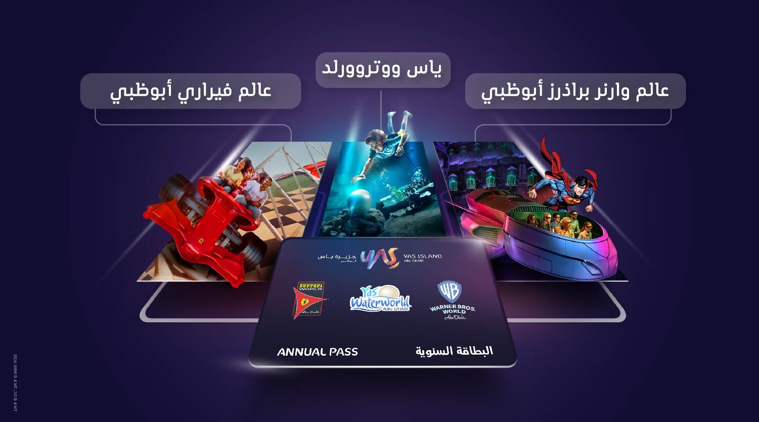 أو قوموا بترقية فئة بطاقتكم إلى بطاقة مدن ياس الترفيهية البلاتينية السنوية واستمتعوا بمزايا إضافية، مثل بطاقات المرور السريع والمشاركة المجانية في الفعاليات الخاصة المدفوعة في المدن الترفيهية الثلاثة!