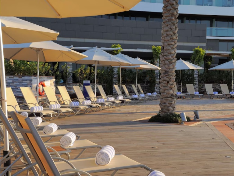 من الانتعاش في حمام السباحة في هيلتون جزيرة ياس إلى الاسترخاء التام في المنتجع الصحي، يوجد العديد من الطرق لتجديد نشاطكم وشعوركم بالسعادة طوال فترة إقامتكم: