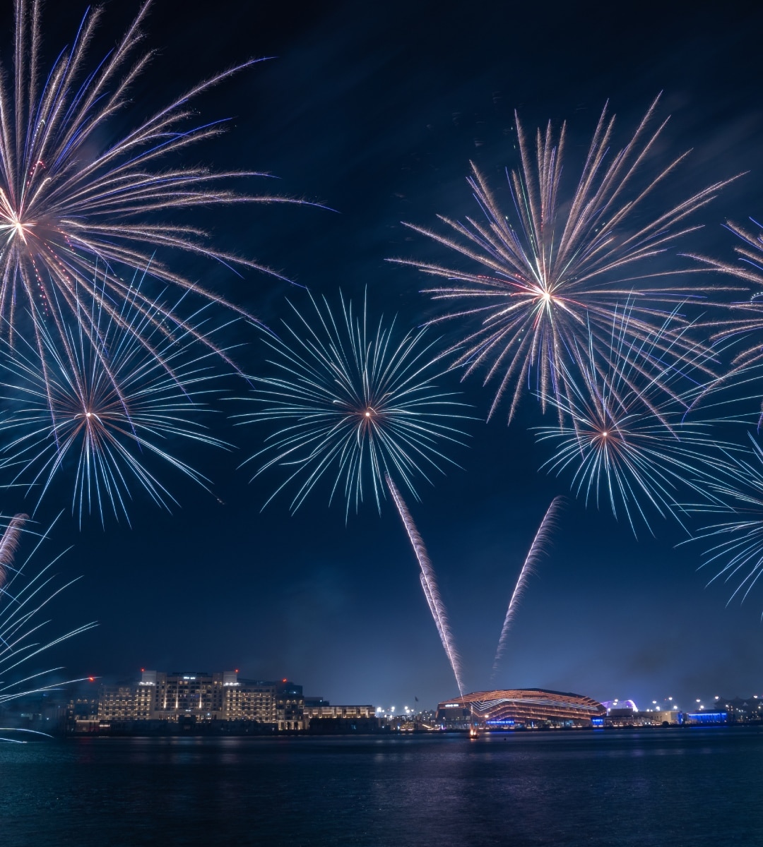 وهناك المزيد – لا تنسوا حضور الألعاب النارية المذهلة في واجهة ياس باي المائية يوم 31 ديسمبر في التاسعة مساءً وعند منتصف الليل.