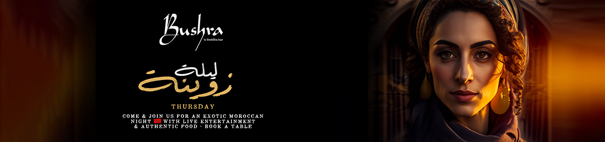 مزيج انتقائي من الثقافة الحديثة في الشرق الأوسط وشمال إفريقيا يندمج في الديكور الفخم وقائمة 'بشرى'، إحدى الردهات الثلاثية (ذا تريلوجي) من بودا بار العصرية في الواجهة البحرية لجزيرة ياس. يقف الشيف جريج معلوف الحائز على جوائز عالمية وراء قائمة الطعام المختصرة والفاخرة التي تتميز بمذاق مدمج ومشاركة سخية من الشواء على الفحم في المطبخ المفتوح. استمتعوا بتناول سمك القاروص البري أو كتف ضأن مطبوخ ببطء والدجاج المطهو في معجنات فيلو المقرمشة. تجذب ردهة المطعم ذات الأجواء المميزة الزوار الذين يأتون لتناول الطعام ومشروبات الكوكتيل المبتكرة والاستماع إلى موسيقى الدي جي المميزة وحفلات الترفيه الحي.