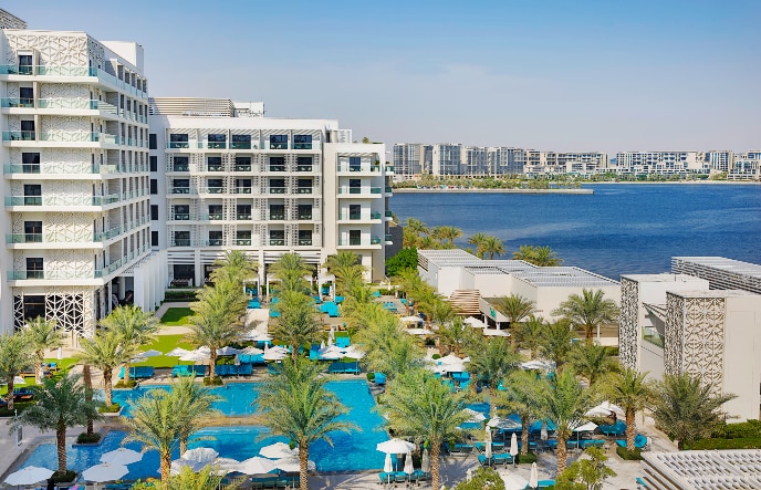 Located on Yas Bay Waterfront's three kilometer-long promenade, Hilton Abu Dhabi Yas Island features 545-rooms and offers an exceptional array of culinary options across several dining venues. Guests enjoy access to Yas Island's exciting theme parks included in their stay. Hilton Yas Island boasts 12 meeting rooms and two majestic ballrooms that are ideal for business conferences. Enjoy your downtime at the outdoor swimming pool with its poolside restaurant; the first Eforea Spa in the UAE; a state-of-the-art fitness center; a kids’ club with splash pool and playground; and free access to a private beach club, all within a five-minute walk of the award-winning Etihad Arena and vibrant Pier71.