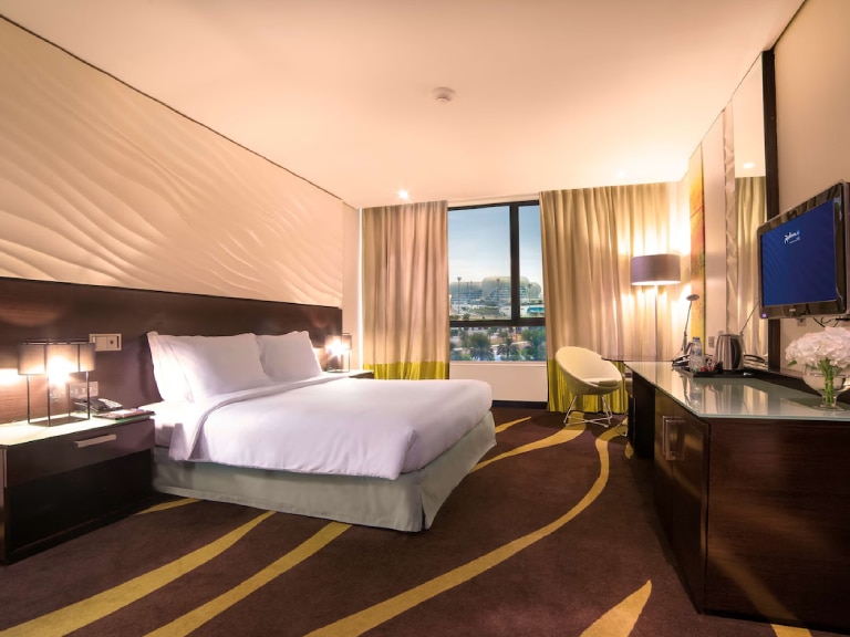Radisson Blu Yas Island is the ideal base from which you can swim in crystal-clear waters at Yas Beach or play on a championship golf course at Yas Links Abu Dhabi. The hotel is also only minutes from world-renowned theme parks. Staying here gives you easy access to all of Abu Dhabi's hotspots - it is only 11 km away from Abu Dhabi International Airport and 15 minutes from cultural attractions like Louvre Abu Dhabi. Book today and club your stay at Radisson Blu Yas island with theme park tickets at great prices!